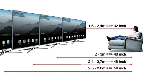 Đối với kích thước màn hình tivi từ 44 đến 55 inch hoặc to hơn nữa thì khoảng cách xem thích hợp là từ 3 đến 4 mét trở lên