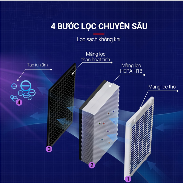 4 bước lọc chuyên sâu mang đến hiệu quả lọc sạch đạt 99,97%