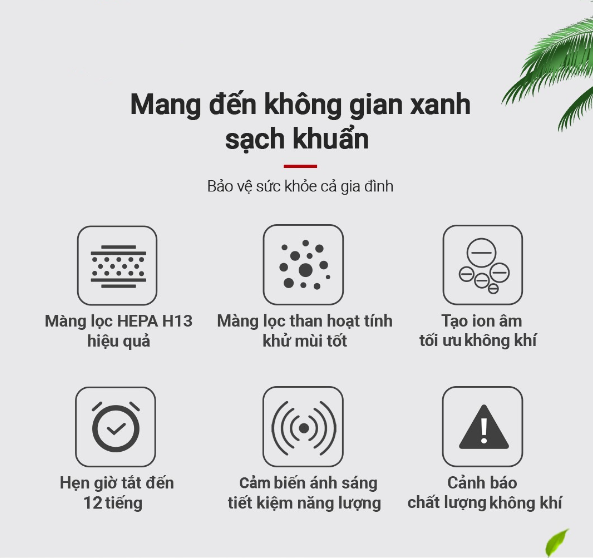 Tái tạo ion (-): Bổ sung mật độ 1 triệu ion/cm3 tối ưu hóa chất lượng không khí.