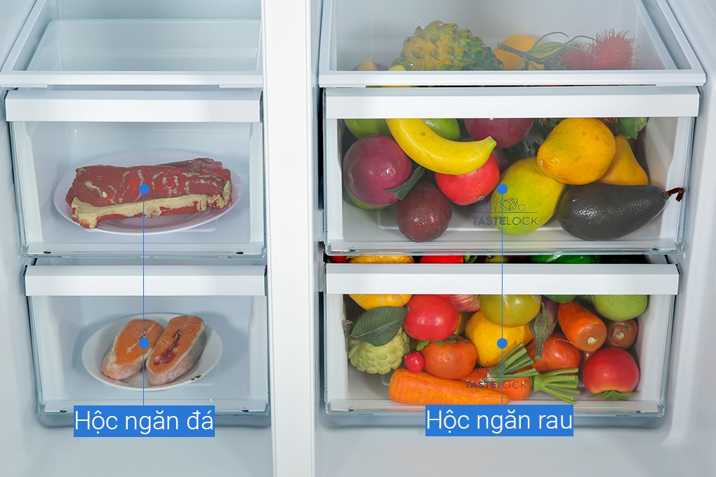 - Ngăn rau củ TasteLock Auto chuyên dụng để đựng các rau xanh, trái cây tươi.